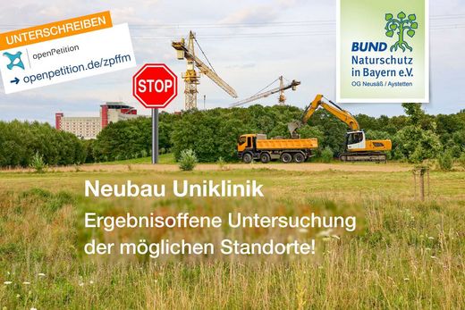 4. Gleichzeitig kämpfen die BN-Ortsgruppen Neusäß/Aystetten und Stadtbergen zusammen mit der BN-Kreisgruppe Augsburg darum, eine echte Öffentlichkeitsbeteiligung bei den Planungen zur neuen Uniklinik am Stadtrand von Augsburg zu erreichen.