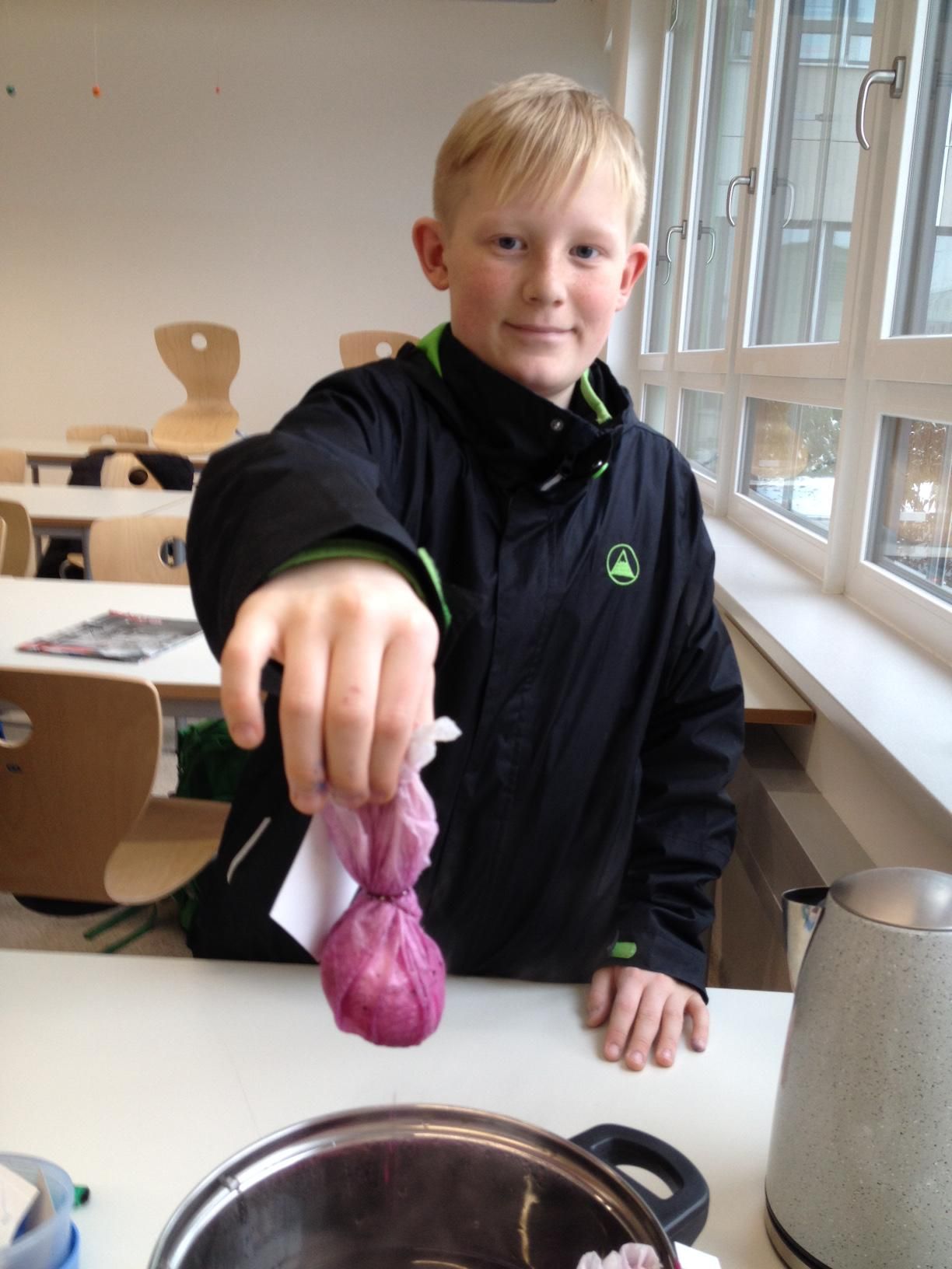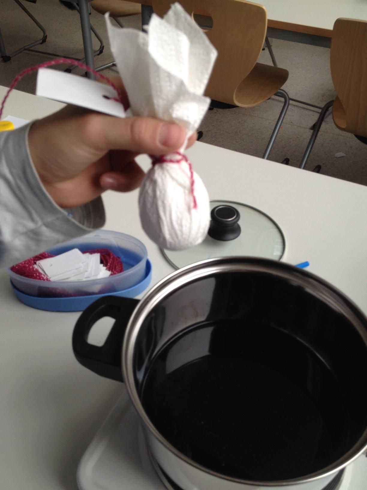 Die Jugendgruppe hat Bioeier mit Naturfarben gefärbt. Das ging ganz schnell und jedes Ei würde zum Unikat. Der Farbstoff wird übrigens aus einer Laus gewonnen, der sogenannten Cochenilleschildlaus. Auch in der Kosmetik findet das Pigment Anwendung, z.B. im Lippenstift.
