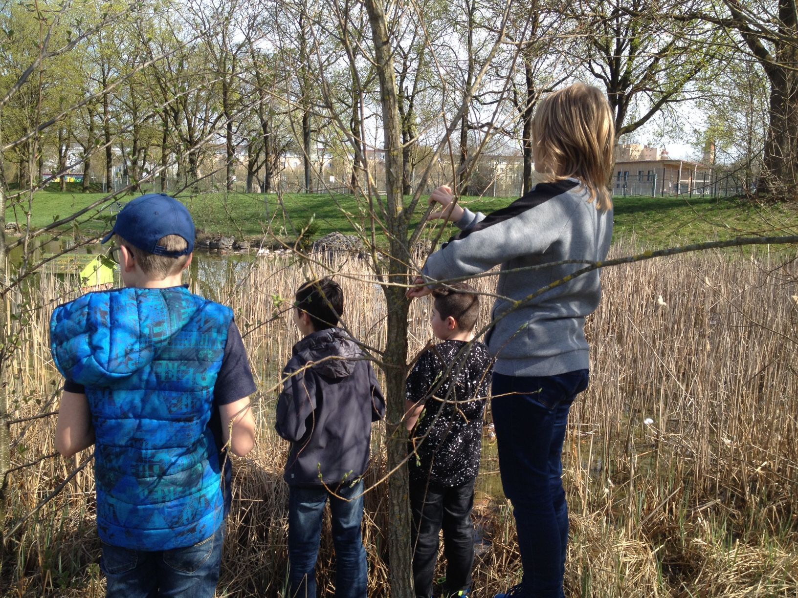 Im neuen Schuljahr gab es mit der Jugendgruppe und der Biologielehrerin Susanna Eberl bereits eine Exkursion entlang der Wertach zu einer Kleingartenanlage. Auf der Suche nach Bienen entdeckte man nicht nur diese eifrig am Sammeln, sondern auch Hummeln und Wespen. Sogar ein Grünspecht ließ sich blicken und Biberspuren waren am Ufer zu sehen.