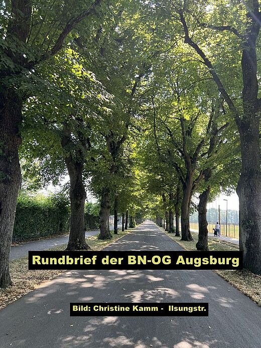 Christine Kamm, Vorsitzende der BN-OG Augsburg: „Zusammen mit Herrn Robert Dettenrieder vom Augsburger Amt für Grünordnung und Naturschutz lernen und diskutieren wir bei dieser Exkursion, wie man Krankheiten und Gefährdungen unserer Altbäume erkennen und diesen entgegenwirken kann, und was wir für deren Erhalt tun können und müssen.“