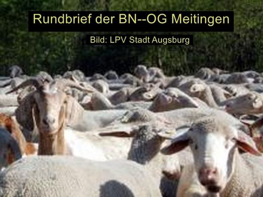 Die Ortsgruppe Meitingen hat seit vielen Jahren einmal im Jahr zu einem Essen mit Lechtal-Lamm von der Hüteschäferei Hartl aus Mühlhausen eingeladen. Unser Lammessen ist gedacht als ein Beitrag zur Sicherung der Schafbeweidung auf den Biotopflächen am Lech im südlichen Landkreis durch den LPV Stadt Augsburg. Die Vermarktung der Marke „Lechtal-Lamm“ trägt dazu nicht unwesentlich bei. Mit unserer Aktion wollen wir zum Kauf dieses regionalen Produktes anregen.