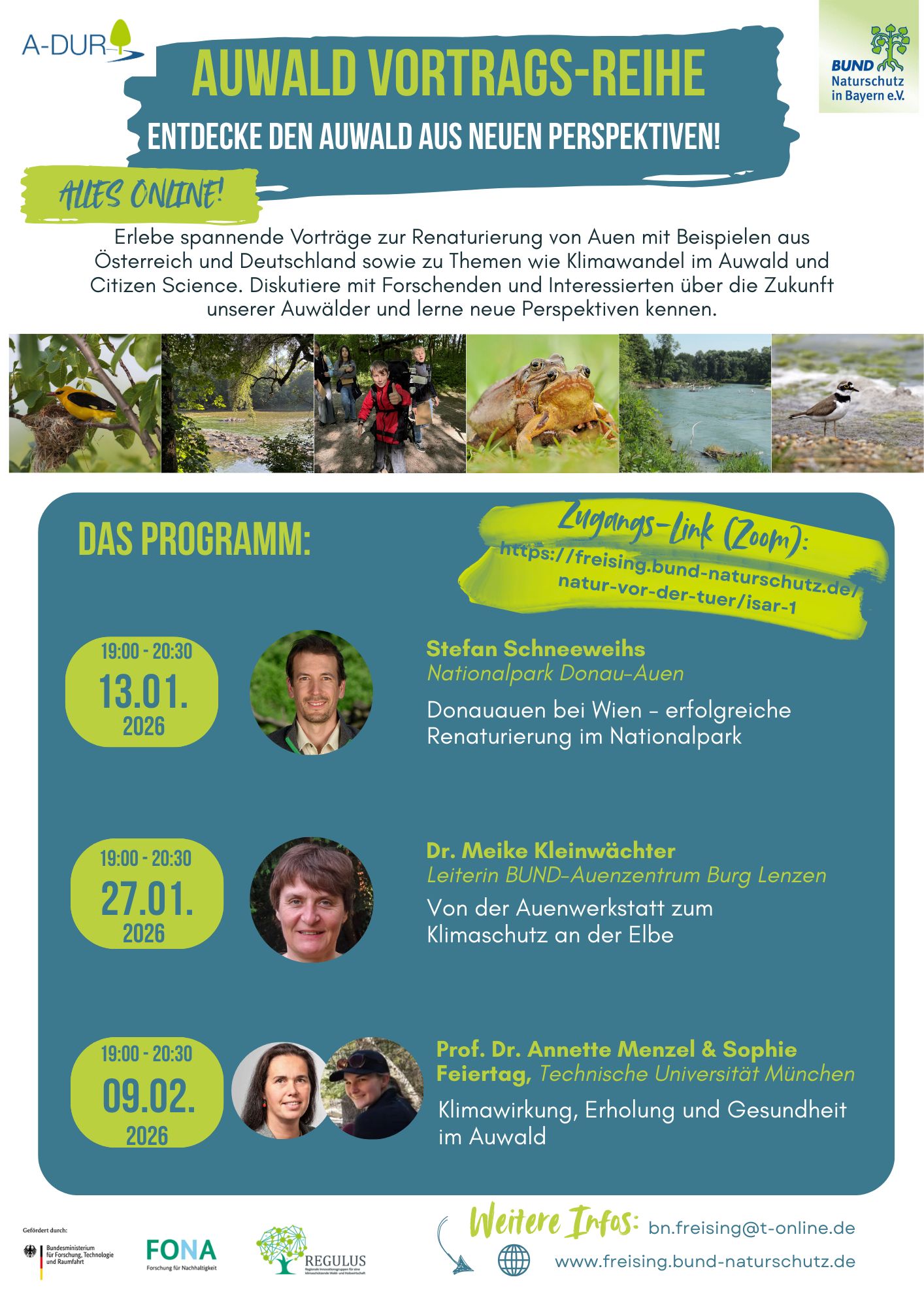 Die BN-OG Freising führt eine Vortragsreihe zur Renaturierung von Auen durch. Der erste Vortrag befasst sich mit der erfolgreichen Renaturierung der Donauauen bei Wien....