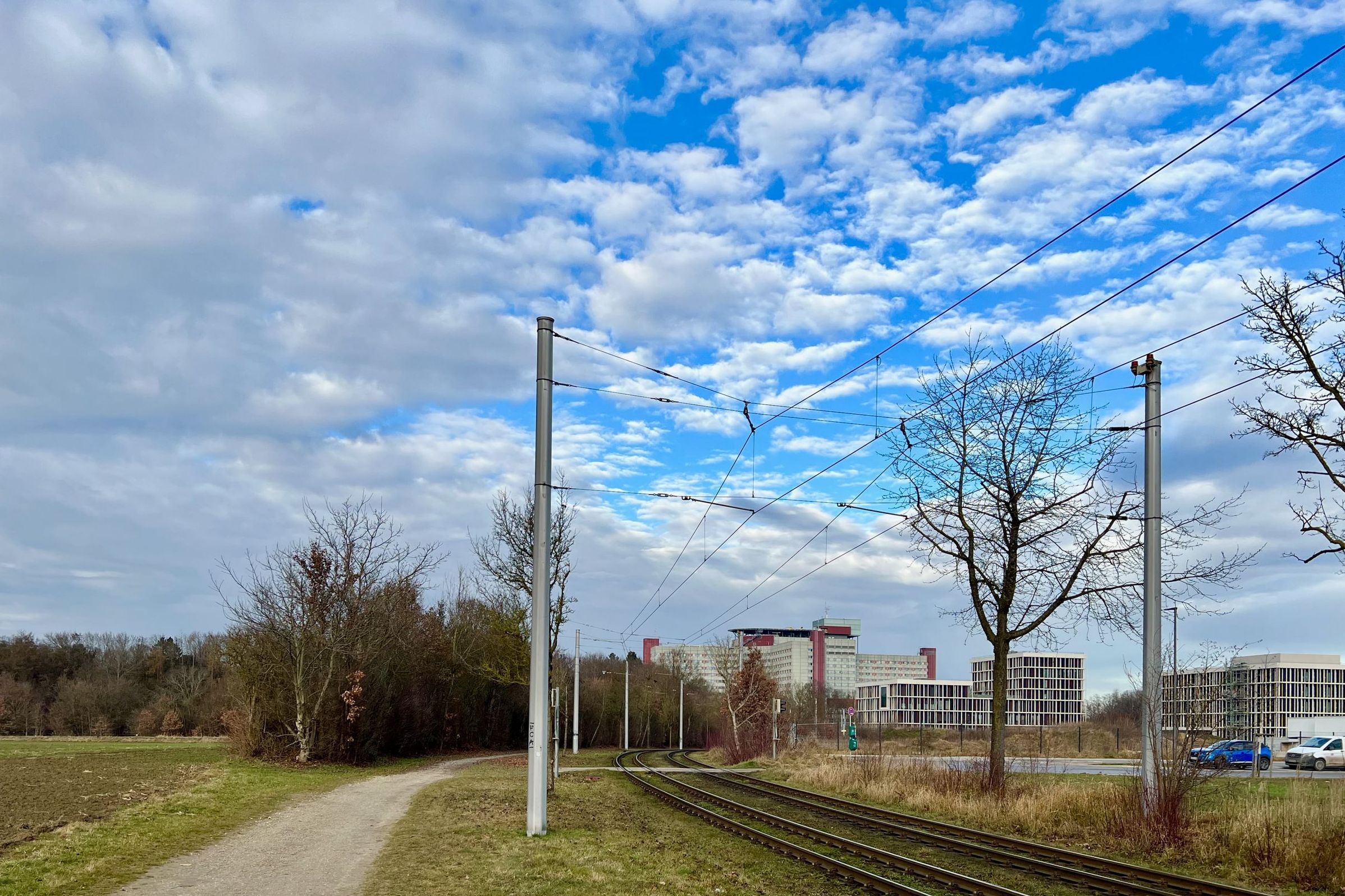 Verkehrlich ist der Standort gut angebunden: bestehende ÖPNV-Anschlüsse (Tram und Bus), kurze Wege für Patientinnen und Patienten, Beschäftigte und Studierende sowie die Nutzung vorhandener Straßennetze sprechen für diesen Standort.
