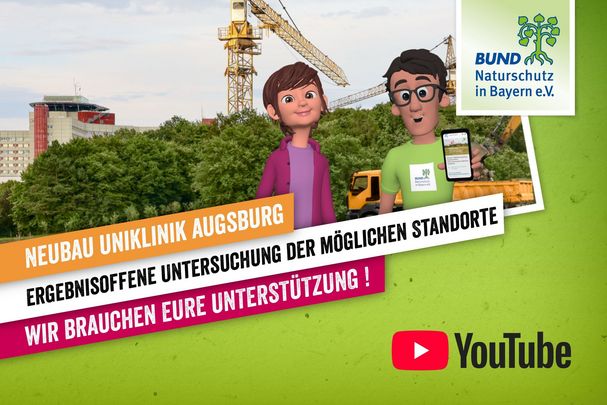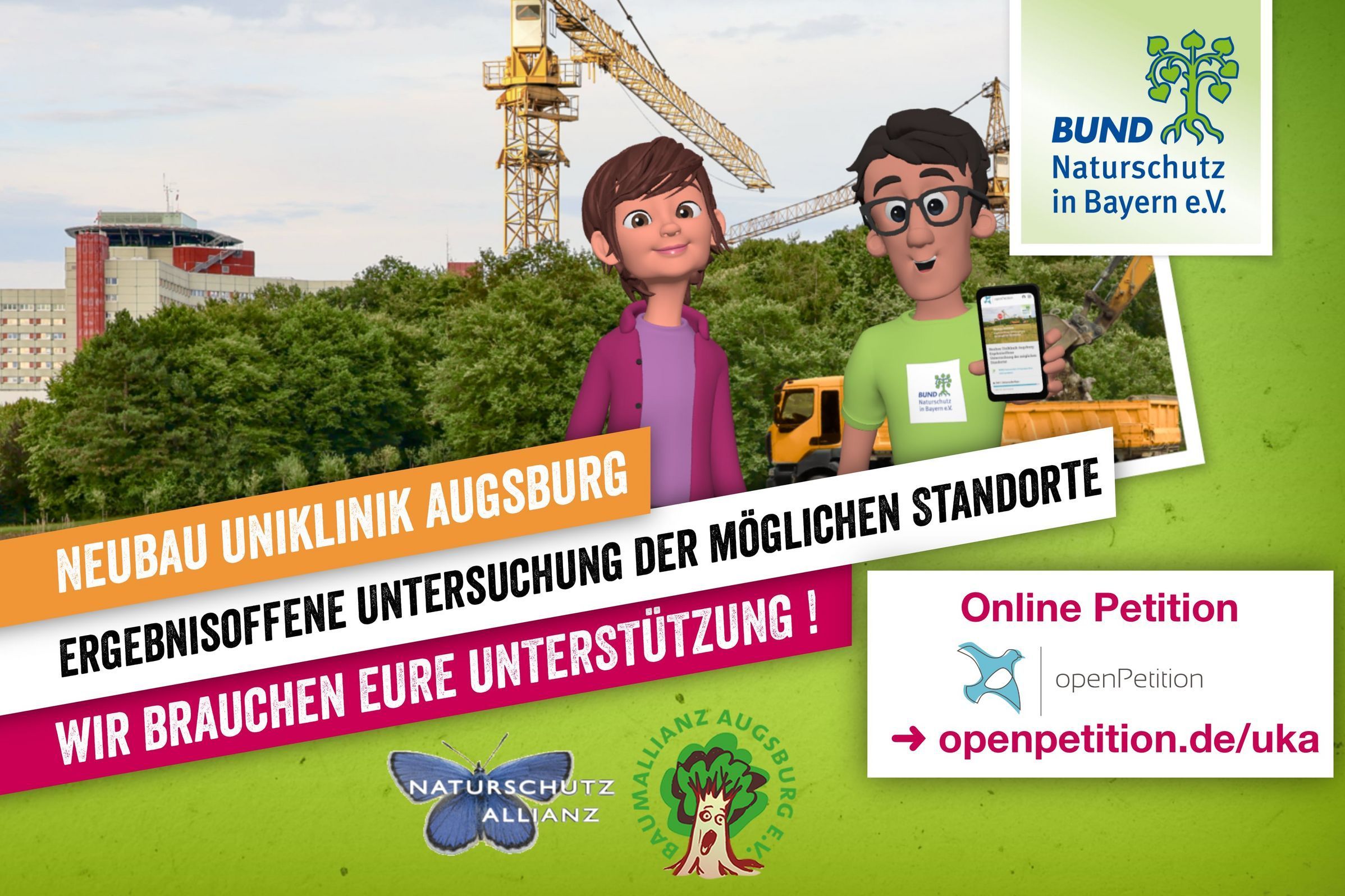 Die Ortsgruppen Neusäß und Stadtbergen des BUND Naturschutz starten eine Online-Petition, da die bisherigen Untersuchungen zur Standortwahl und die Vorfestlegung auf das Baufeld „West“ ohne öffentliche Beteiligung erfolgt sind. Gefordert werden eine