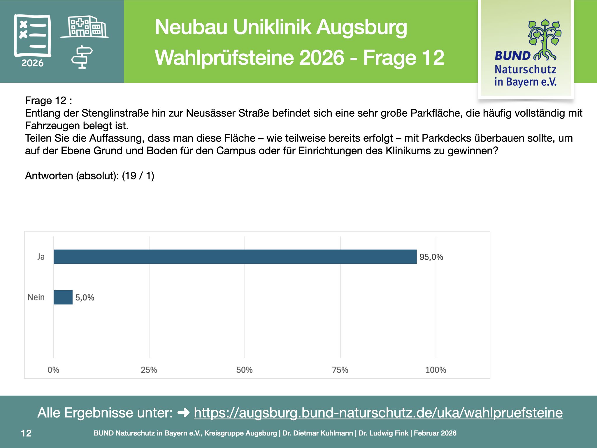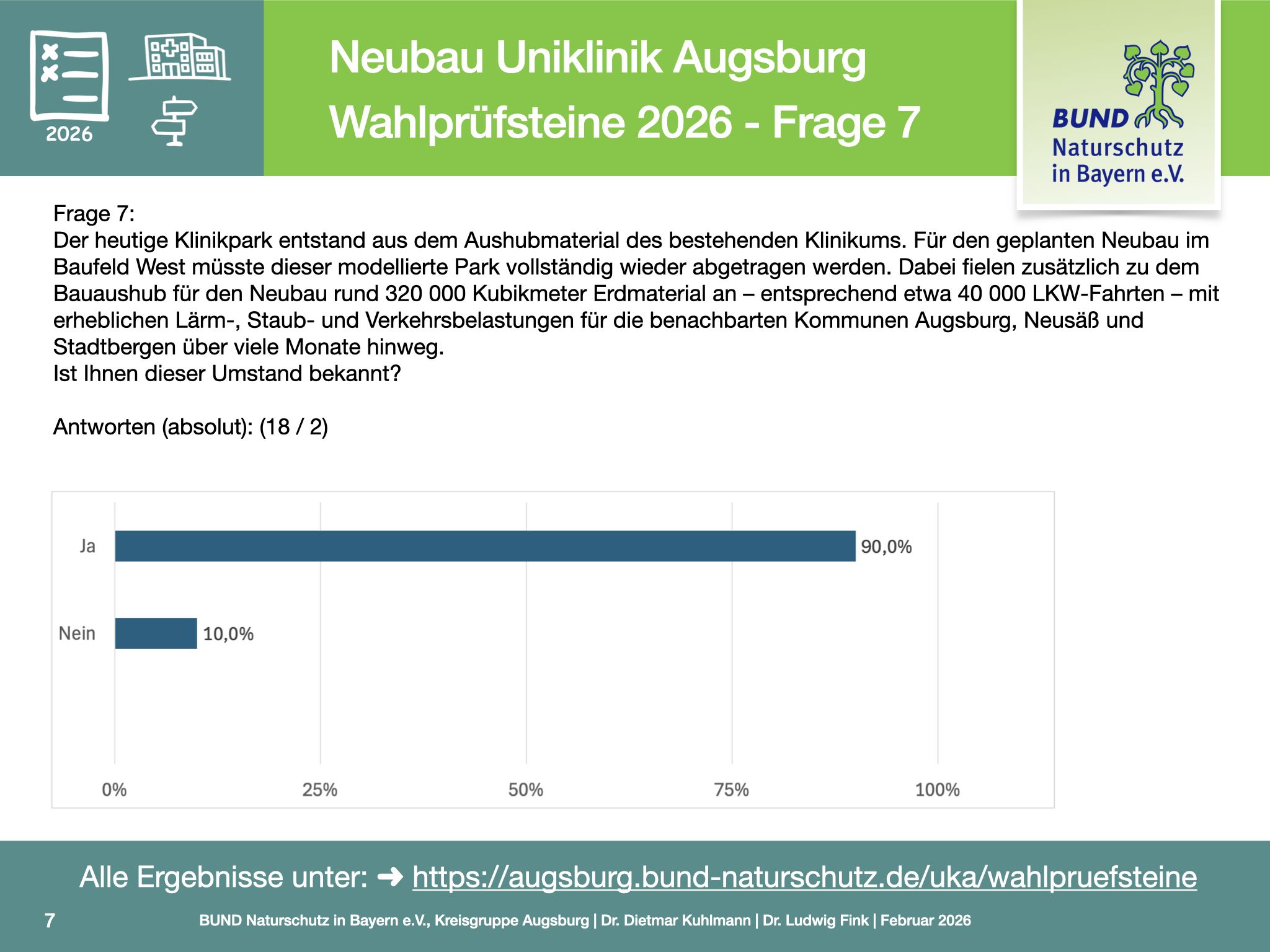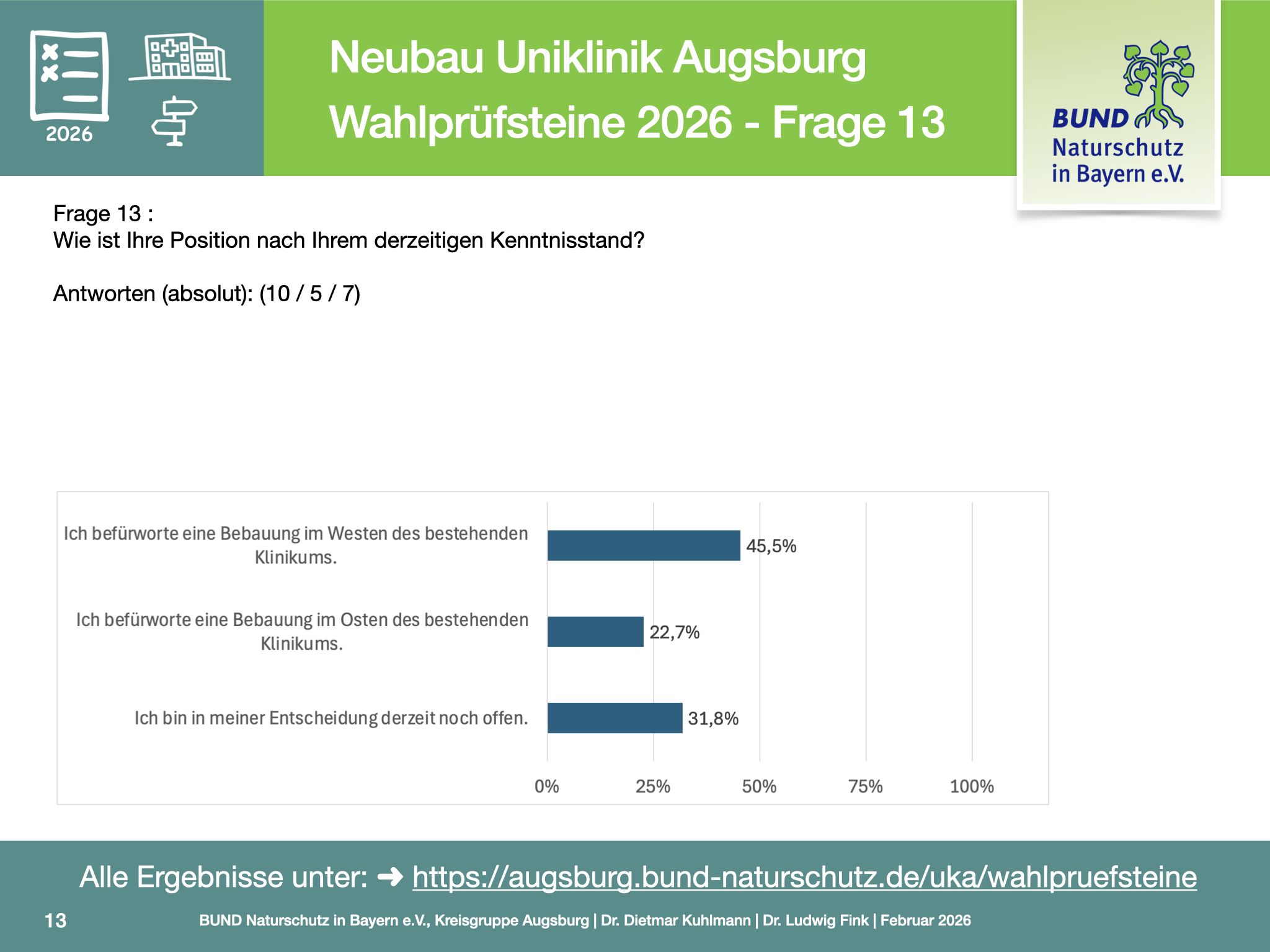 Ziel der Befragung ist es, für die Bürgerinnen und Bürger vor den Kommunalwahlen nachvollziehbar zu machen, wie sich Parteien und politische Verantwortungsträger zu einem Projekt positionieren, das medizinische Versorgung, Stadtentwicklung sowie Klima- und Naturschutz gleichermaßen betrifft.